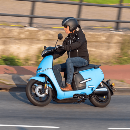 A força motriz da EK1 vem de seu forte motor de cubo, acoplado na roda traseira. Ele fornece 2800W de potência máxima, o que impulsiona a leve scooter (que pesa menos de 100kg) com uma aceleração surpreendente pelas ruas da cidade. Essa solução aumenta a eficiência energética da bateria e entrega seu torque total sempre que solicitado, o que surpreende numa scooter equivalente a um modelo de 50cc.